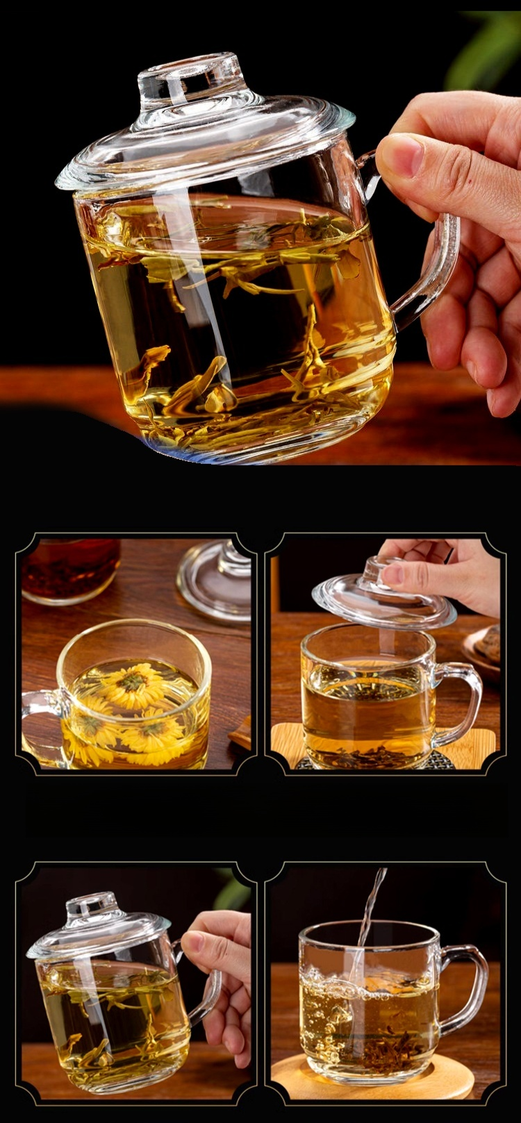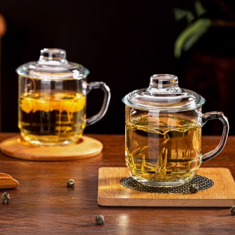 家庭用耐熱ガラスマグカップ(蓋付き)